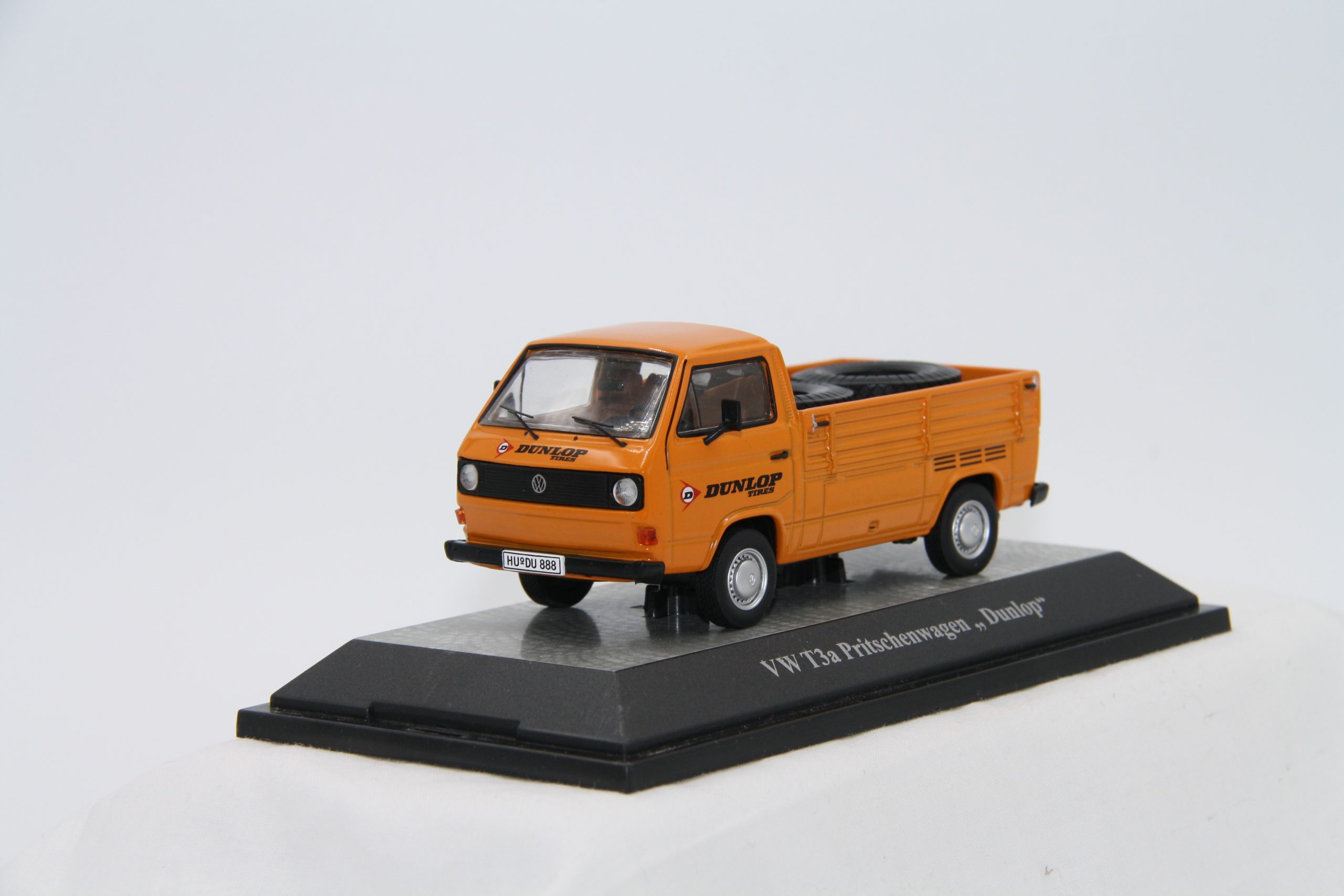 orange mit zwei Reifen beladen, Beschriftung Dunlop